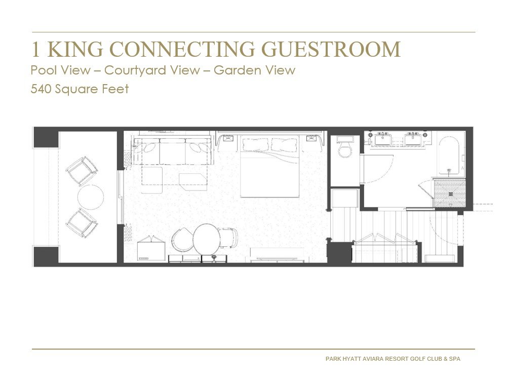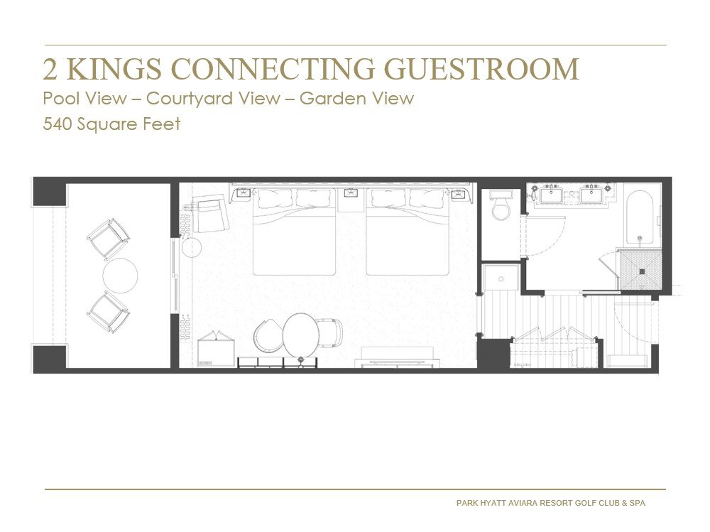 Experience tranquility and self-care in this 1,080 square foot space featuring two connected rooms—one furnished with a king bed and a sleeper sofa, and the other with two king beds. Unwind in luxury in the marble bath, complete with a dual-sink vanity, a soaking tub, and a shower, or relax on the secluded balcony overlooking the foothills.